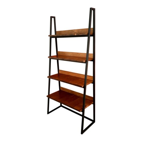 Mesa de trabajo de madera pino americano y base de metal en negro mate.