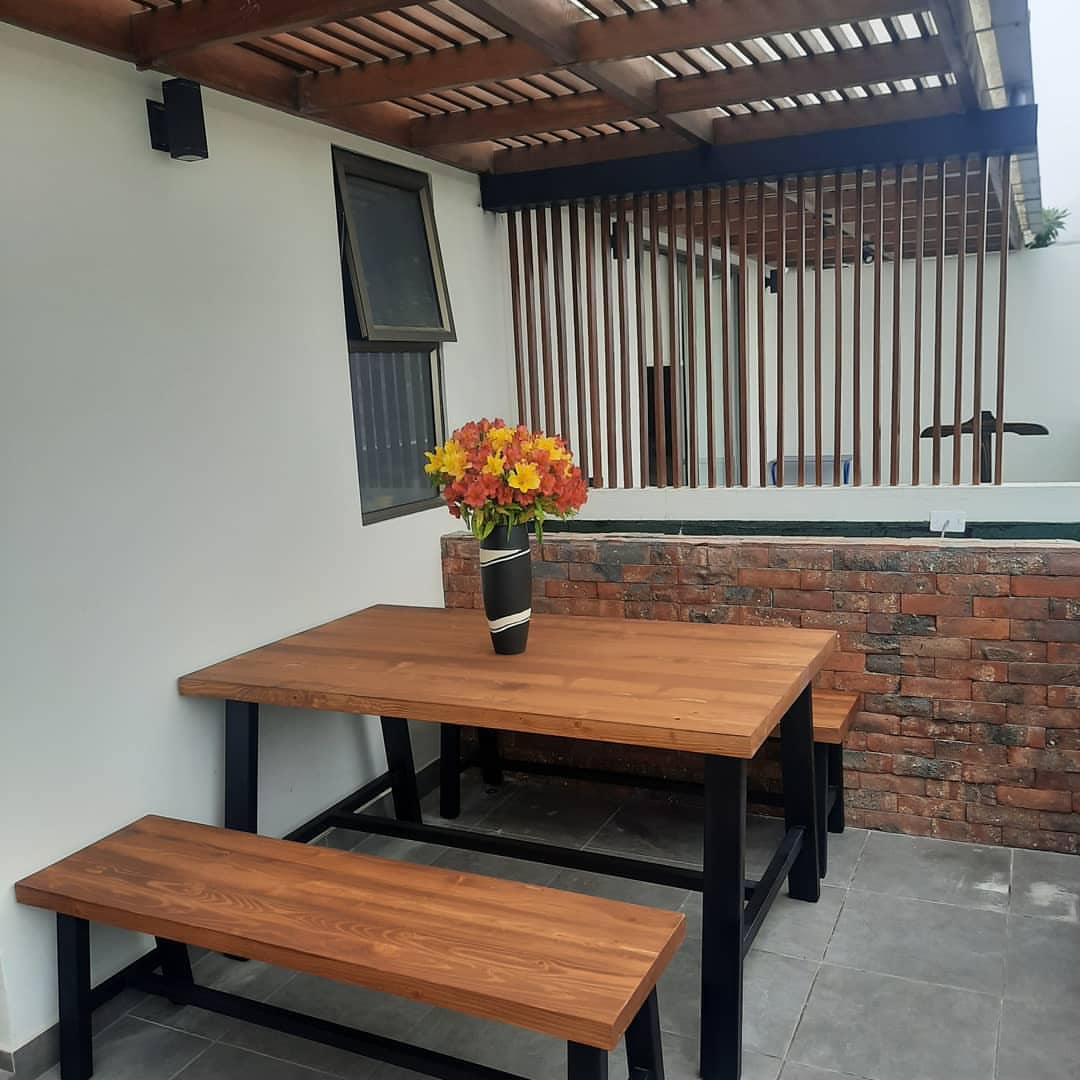Mesa de comedor de madera pino americano y base de metal en negro mate. Medidas: 1.55*0.80 mts, alto 0.76 mts. Para 6 personas. Perfecta para sala o terraza ! Combínala con tu una de nuestras banquetas !